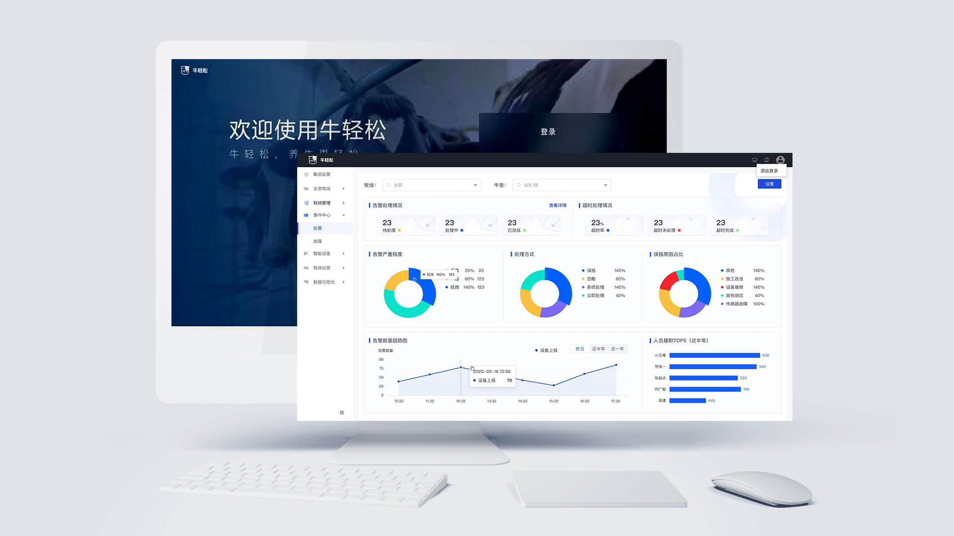 牛輕松對牧場的智能風(fēng)機(jī)系統(tǒng)、噴淋系統(tǒng)、視頻監(jiān)控系統(tǒng)、智能照明系統(tǒng)、能源監(jiān)測系統(tǒng)、環(huán)境監(jiān)測系統(tǒng)、工單系統(tǒng)等進(jìn)行統(tǒng)一的管理與聯(lián)動配置。產(chǎn)品的應(yīng)用實現(xiàn)牧場內(nèi)所有設(shè)備的一鍵全連、協(xié)同聯(lián)動及可視化管理,輔助牧場能夠綠色的、高效的、可持續(xù)盈利的長足發(fā)展。